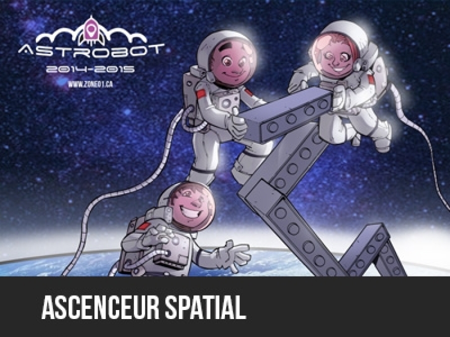 Construire un robot qui, en s’aidant d’un contrepoids, sera capable de se hisser le long du câble (poutre), d’identifier le chargement pour l’ISS (balles bleues) ou les satellites perdus (balles jaunes) ou d’autres objets qu’il faudra redescendre sur terre (balles rouges), de les saisir, puis de continuer son ascension jusqu’à (aux) l’altitude(s) de mise en orbite du (des) chargements.